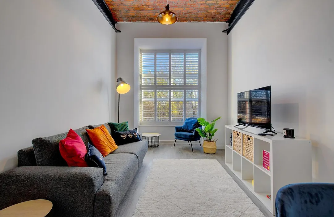 The spacious Ancoats Apartment Old Spinning Mill Free Parking - Pass The Keys Manchester is located in a residential area of Manchester, a 25-minute walk from the Etihad Stadium.